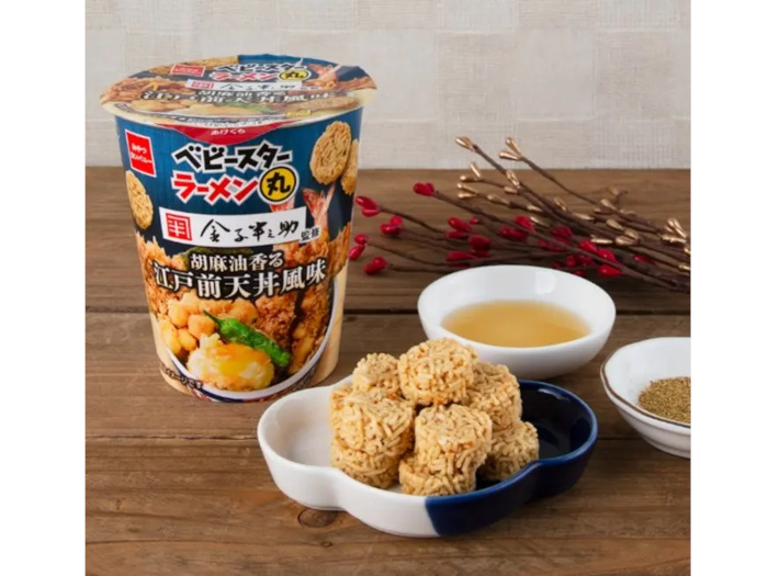おやつカンパニー、ひとくちサイズの「ベビースターラーメン丸(金子半之助監修 胡麻油香る江戸前天丼風味)」を期間限定発売