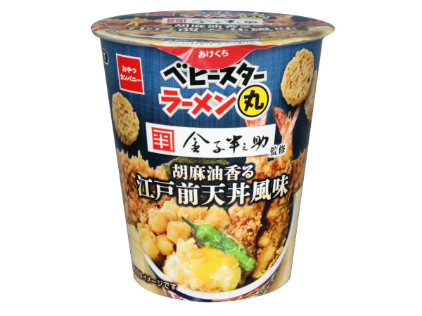 おやつカンパニーは、オイシーズグループが運営する江戸前天丼店「日本橋 天丼 金子半之助」とのコラボレーション商品として、「ベビースターラーメン丸(金子半之助監修 胡麻油香る江戸前天丼風味)」を、12月15日から期間限定で発売する。