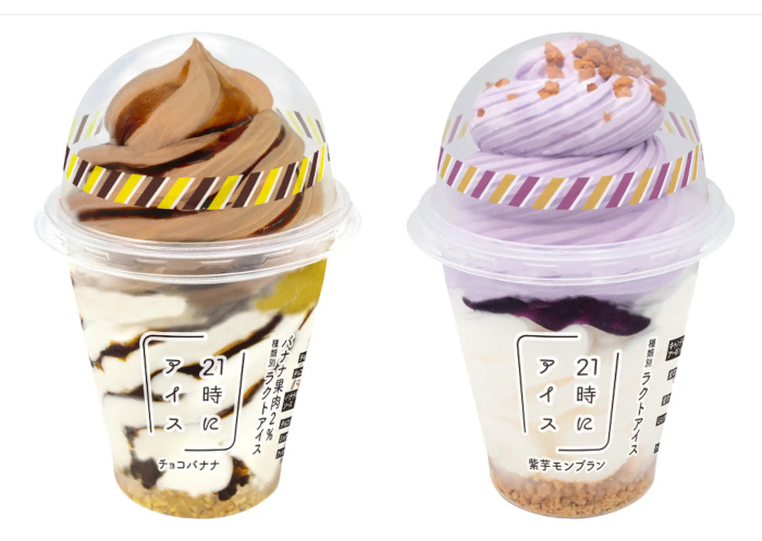 セブン-イレブン、アイスクリーム専門店「21時にアイス」監修の「21時にアイス チョコバナナ/紫芋モンブラン」を数量限定発売