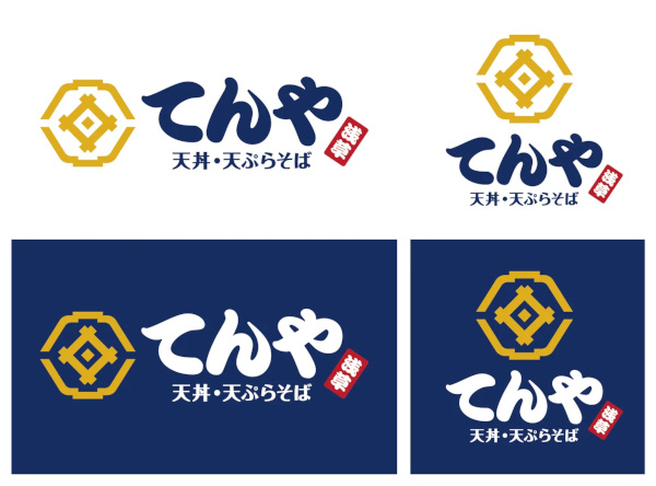 一方で、創業当時から守り受け継いできた「天丼てんや」の大切な価値観をこれからも引き継いでいく想いを込め、旧ロゴでも使用をしていた、藍色・きび色・朱色を継続して使用。
