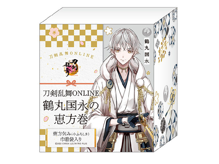 また、予約特典として、コラボレーション限定の恵方包み(小ふろしき)と巾着袋が付いており、刀剣男士「鶴丸国永」が描かれた特別デザインの専用ボックスに入れて恵方巻を届ける。