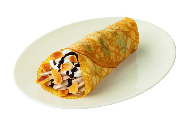 「節分 チョコバナナクレープ」は、チョコホイップとホイップクリームの2つのクリームとバナナを包んだクレープ。クレープの内側にコーティングチョコをかけ、鬼のパンツを表現した。