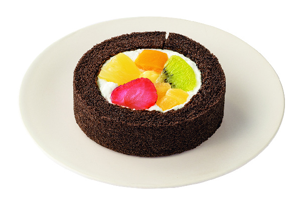 「節分 フルーツロール」は、5種類のフルーツ(イチゴ、パイナップル、黄桃、キウイ、りんご)を使用した見た目も鮮やかなロールケーキに仕上げている。