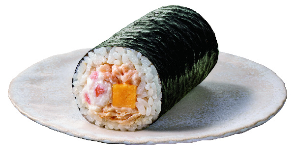 「サラダ恵方巻」は、ツナマヨネーズ和え、海老マヨネーズ和え、カニカマなどで仕立てた恵方巻。前年よりも海老マヨネーズ和えを増量し、食べ応えをアップしている。