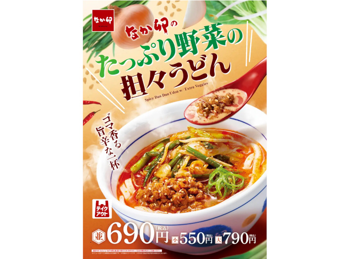 ぜひこの機会に、近くのなか卯の店舗や家庭で、ボリューム満点でやみつきになる味わいの「たっぷり野菜の担々うどん」を食べてほしい考え。