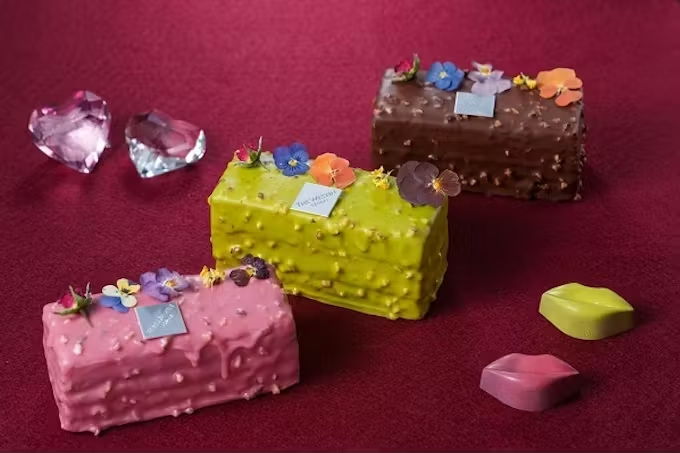 幸せが続くようにと願いを込めたバレンタインアイテムをラインアップ。軽やかなスフレ生地にガナッシュを重ねたスフレショコラは異なる味わい3種類を用意した。「ノワール」はビターチョコレートにオレンジの香りを添え、「ヴェール」はコーヒーとピスタチオの濃厚な余韻を楽しめる。「ルビー」はルビーチョコレートとベリーの酸味を組み合わせた。さらに、リップ型のチョコレート「レーブル コロレ」は4つの味わいを一箱にした。ダマスクローズとレッドベリー、ベルガモットとシャルトリューズ酒のガナッシュ、パイナップルとジャスミン、赤しそとカシスが、一粒ごとに凝縮されている。また、トンカ豆が香るテリーヌショコラは、低温で焼き上げたなめらかな口どけにクランチの食感を添え、贈り物にもふさわしい仕上がりとなっている。