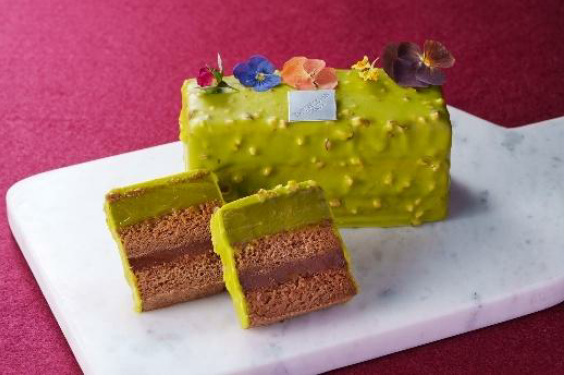 「ヴェール」は、ミルクチョコレートのスフレ生地に、コーヒーとピスタチオのガナッシュをサンドした。ふんわりとした生地と、ナッツの女王と称されるピスタチオの味わいを楽しんでほしいという。