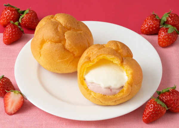 「ジャンボシュークリーム(あまおう苺&ミルクホイップ)」は、「あかい・まるい・おおきい・うまい」と4拍子揃った人気の苺「あまおう」を使用したジャンボシュークリーム。濃厚な甘さの中にほどよい酸味がある、あまおうの特長を生かした苺カスタードと、口あたり軽やかなミルクホイップクリーム、風味豊かなシュー皮の一体感を楽しんでほしいという。