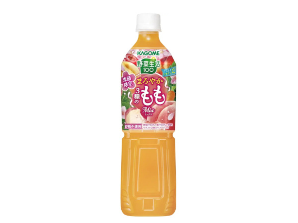 カゴメ、季節限定の野菜・果実ミックスジュース「野菜生活100 まろやか3種のももミックス」を発売