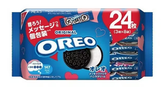 モンデリーズ・ジャパンのビスケットブランド「オレオ」は、バレンタインに向けて、3文字メッセージつき個包装が入った「オレオ メッセージパック バニラクリーム 24枚」を1月12日から発売する。