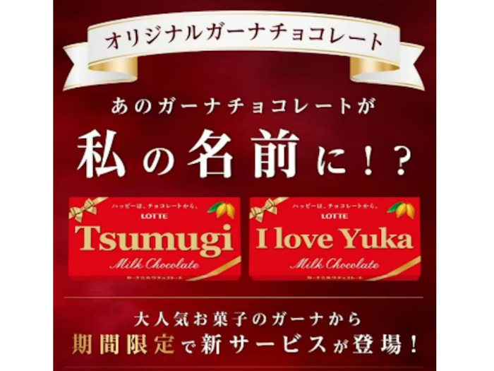 ロッテ、ロッテオンラインショップ限定でパッケージロゴを自分でアレンジできる「オリジナルガーナチョコレート」を期間限定販売