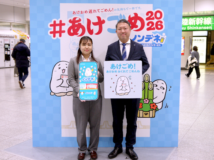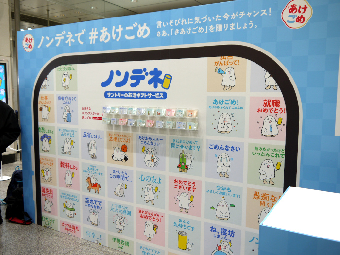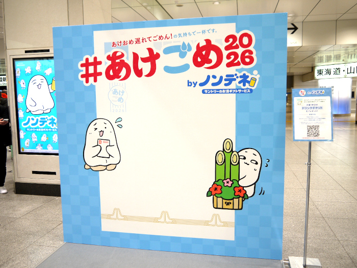 サントリー、正月終わりの年賀イベント「#あけごめ by ノンデネ」をJR東京駅で開催、年始の挨拶をいいそびれた気まずさ解消