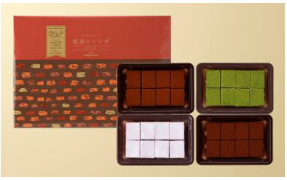 「銀座のレンガ トロワ(24個入)」は、口に入れた瞬間に、雪のようにほどけていく繊細な口どけの生チョコレート3種をアソートした。選びぬいた素材と素材が引き立て合う、絶妙なマリアージュを楽しんでほしいという。