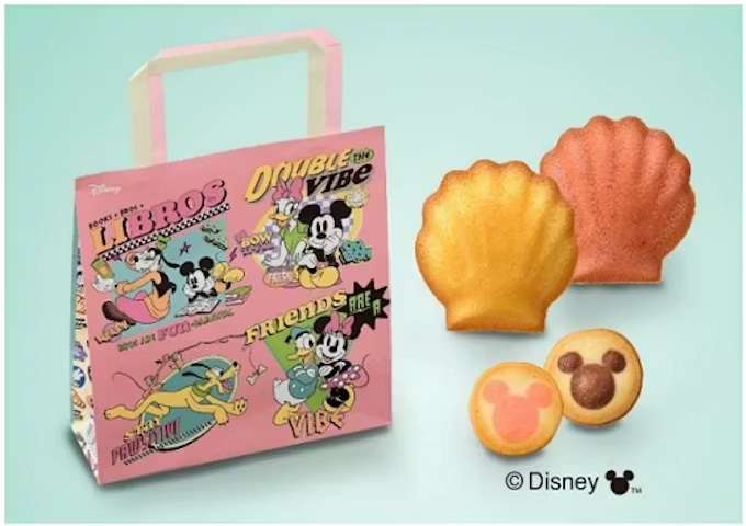 アソートの焼菓子は、ふんわりしっとり焼き上げたバター味・いちご味のマドレーヌと、サクサク食感の「ミッキー」アイコン柄クッキー2種。個包装フィルムには「ミッキー」アイコン柄をプリントした。