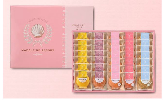 「マドレーヌアソート(35個入)」は、岡山県産の桃「白鳳(はくほう)」の芳醇な甘み&香りが広がる「ももマドレーヌ」、ふわりとさくらが香る「さくらマドレーヌ」に、人気のバター、いちご、アールグレイマドレーヌをアソートした。厳選した素材の味を引き立て、ふんわりしっとり、風味豊かに焼き上げたマドレーヌ5種を楽しんでほしいという。