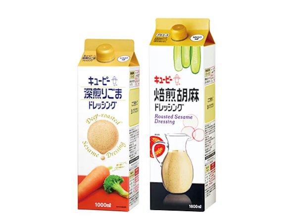 キユーピー、市販用「深煎りごまドレッシング」1000mlに紙パックを採用し発売、プラスチック使用量約75%削減へ