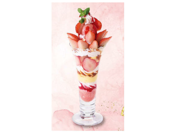 「苺の春パフェモンブラン仕立て」は、苺ジェラートや甘ずっぱい苺などを重ねて、苺風味のなめらかなモンブランクリームを絞って仕上げた苺づくしの贅沢なパフェとなっている。