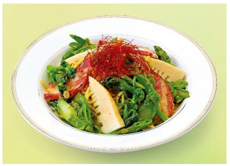 パスタは、もちもち食感の生パスタを使用し、菜の花、筍などの春野菜に「桜えび」と「イベリコ豚」をそれぞれ組み合わせた2品を用意した。「桜えび」と「イベリコ豚」の旨味に春の食材の心地よい“苦み”がアクセントになり、春を感じさせるパスタになっている。