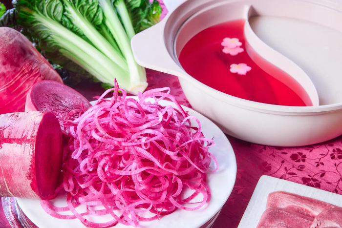 さらに、紅くるりや梅花レンコン、ターサイといった季節野菜の彩りについても注目が集まり、特に「紅くるり」を鍋に入れて、だしの色の変化を楽しむ姿が多く見られた。