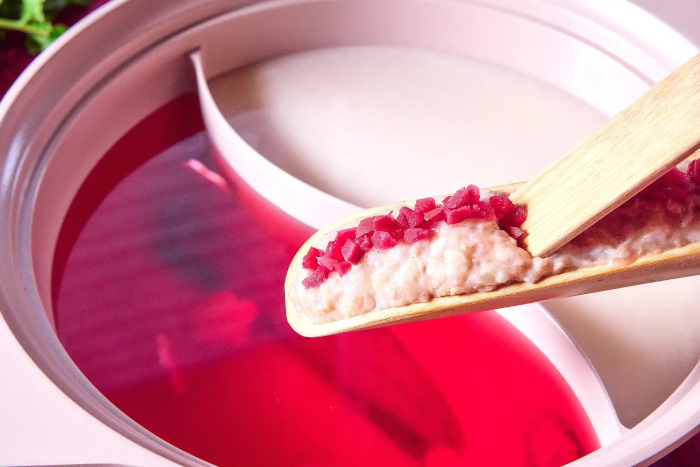 しゃぶしゃぶ温野菜、初春の季節限定メニュー「梅たんしゃぶ」と「鶏白湯しゃぶ」を“紅白二彩鍋”として販売