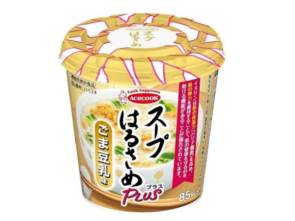 エースコック、水溶性食物繊維の一種である「イヌリン」を配合した機能性表示食品「スープはるさめプラス ごま豆乳味」を発売