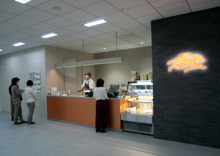 それでは、お披露目会で公開された新オフィスのリニューアル内容を紹介しよう。まず、新オフィスでは、ランチや休憩、カジュアルな打ち合わせなどに活用できる「カフェ」を設置。グループ商品を使用したメニューを用意することでブランド体験を創出すると共に、週に1回程度、就業時間後に酒類も提供し、ブランド体験・交流を促進する。