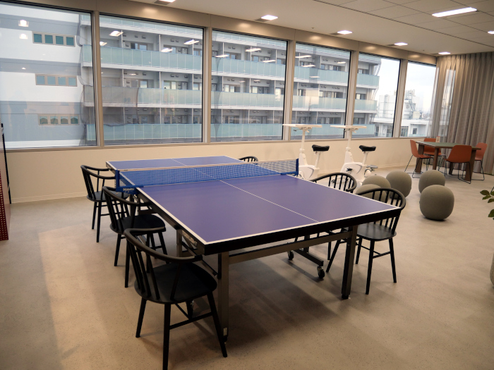 「PLAYGROUND」は、気分転換や従業員同士の交流を促進するエリア。卓球やエアロバイク、ボードゲーム、TVゲームなどを自由に楽しむことができる。
