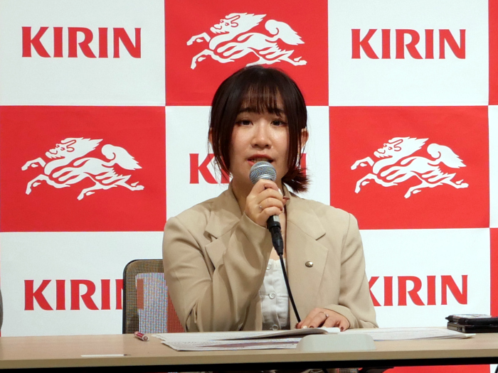 続いて、同 人財戦略部 企画・組織開発担当の蘇嘉凌氏が、オフィスリニューアルの背景や目的について紹介した。「コロナ禍を経て、在宅勤務を取り入れたハイブリッドな働き方が定着した一方で、対面でのコミュニケーション価値が再認識され、オフィスへ出社する動きが顕著になっている。また、雇用やキャリアもさらに多様化し、経営戦略と連動した人的投資への期待・重要性も高まっている。今回のオフィスリニューアルでは、こうした働き方の変化や雇用・キャリアの多様化に合わせ、めりはりのある生産性の高い働き方を実現するオフィス環境を目指した」とのこと。「新たなオフィスフロアでは、キリングループのブランド理解や従業員同士の交流、共創の機会創出、従業員の心身の健康を支援するリフレッシュエリアを強化した。これによって、今まで以上に交流・共創が生まれ、従業員同士、そしてキリングループとの“つながり”を感じながら、新たな価値創造にチャレンジできる環境を提供していく」と、オフィスリニューアルを通じて従業員の働きがいをさらに向上させ、持続的な成長に向けたイノベーションを加速していくとの考えを示した。
