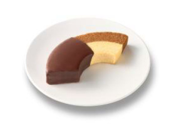 「2層のショコラバウムクーヘン チョコ&プレーン」は、ショコラ味の生地と発酵バター香るプレーン生地、しっとりとした2層のバウムクーヘンに、チョコをかけた。