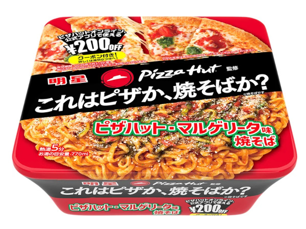 日本ピザハット、明星食品とのコラボ商品「明星 ピザハット監修 ピザハット・マルゲリータ味焼そば」を発売