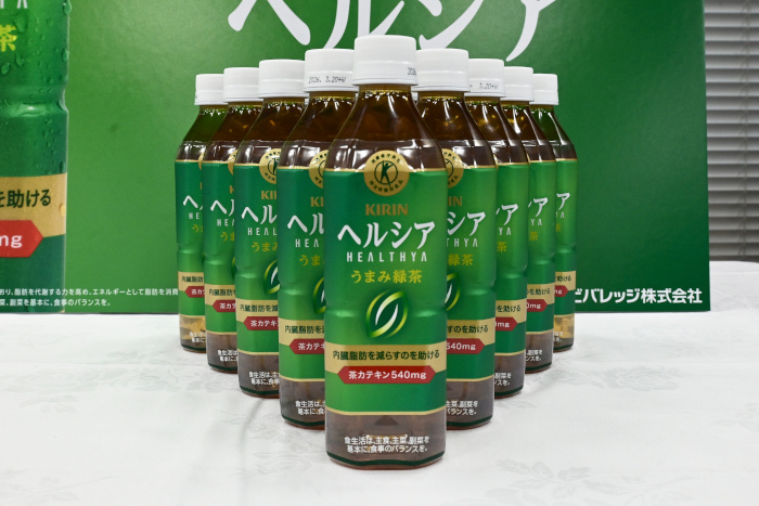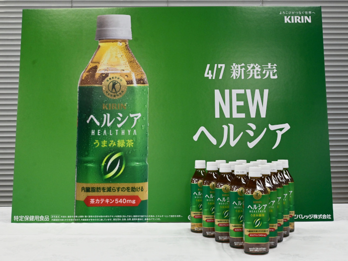 「無糖茶においては、『ヘルシア』をトクホのパイオニアとしての機能への信頼をベースに、今の時代に合った健康ブランドにイメージを刷新させる」と、市場規模の大きな健康意識のある無糖茶ユーザーをターゲットに新規ユーザーを獲得し、カテゴリー間口の拡大を図っていくと力説する。「ブランドイメージの刷新のキーになる商品として、『キリン ヘルシア うまみ緑茶』を4月7日から発売する。同品では、最も高濃度の茶カテキン540mgを配合。緑茶としてのおいしさと確かな機能が感じられる、親しみやすさ・品質感のあるデザインを採用した。また、うまみと香りを楽しめる贅沢な味わいでありながら、飲み続けやすいおいしさを実現している」と、機能への信頼をベースに、市場で新たなポジションを獲得することで、「日常の手軽な健康習慣」として定着させる考えを示した。