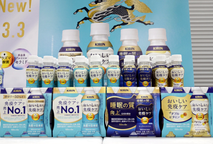 「3月3日には『おいしい免疫ケアセラミドプラス』を発売する。米由来グルコシルセラミドとプラズマ乳酸菌を配合したヨーグルトテイストの小型ドリンクとなっている」と、新商品で健康飲料市場を活性化させていくと意気込んだ。