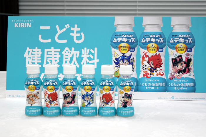 「また、昨年は単なる子ども向け商品ではなく、子ども健康飲料の市場を拡大し、子どもの健康に中長期で取り組むブランド『ムテキッズ』を上市した。今年は『キリン つよいぞ!ムテキッズ』を3月17日から全国発売する」と、一部量販企業限定で紙パック(125ml)で販売していたものを100mlペットボトルで全国展開するという。