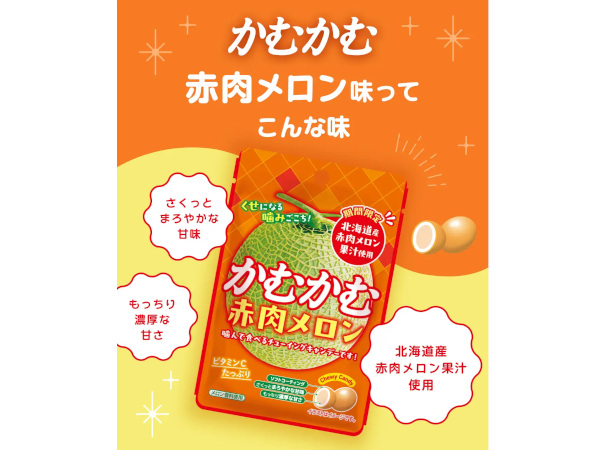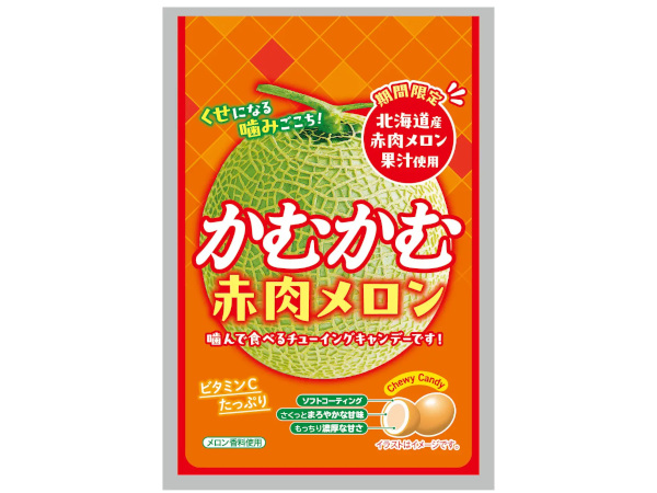 三菱食品、噛んで食べるチューイングキャンデー「かむかむ赤肉メロン30g」を期間限定発売