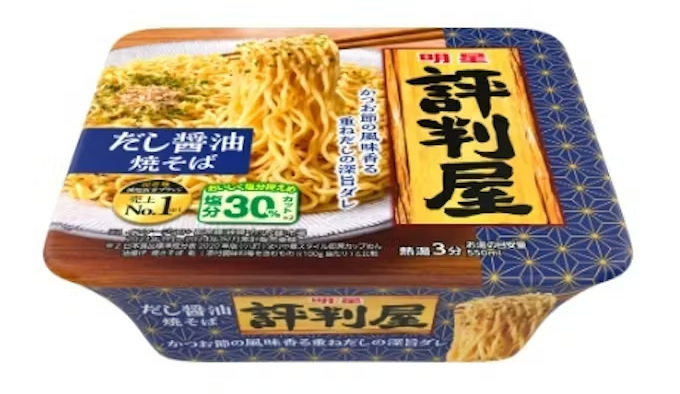 明星食品、塩分30%カットしおいしく減塩を実現したカップ焼そば「明星 評判屋 だし醤油焼そば」を発売