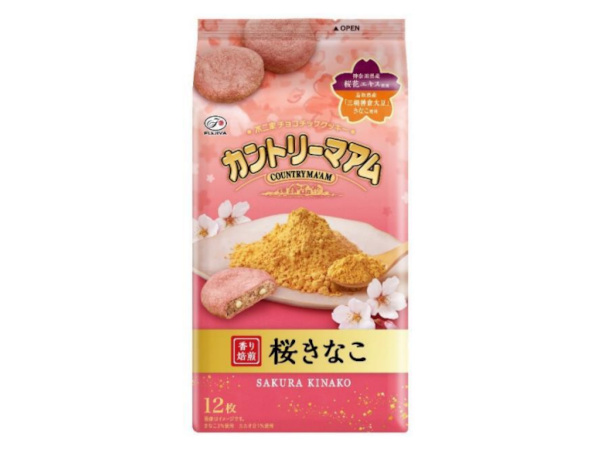 「カントリーマアム(桜きなこ)」は、神奈川県産桜花エキスと鳥取県産「三朝神倉大豆」のきなこを生地に練り込み、ホワイトチョコチップを合わせて焼き上げたカントリーマアム。華やかな桜の香りと香ばしいきなこの味わいが愉しめる期間限定商品となっている。