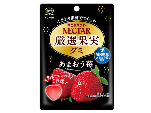 不二家、厳選素材を愉しむネクターグミから福岡県産あまおう苺を使用した「ネクター厳選果実グミ(あまおう苺)」を期間限定発売