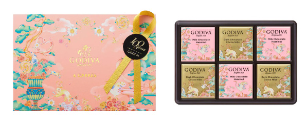 「ゴディバ アーリースプリング カレ アソートメント 6枚入」は、ほろ苦いカカオニブ入りのダークチョコレートとクリーミーなくちどけのヘーゼルナッツ風味のミルクチョコレートのカレを詰め合わせた。