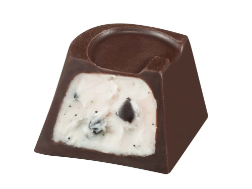 「G キューブ ダーク ストラッチャテッラ」は、イタリアの人気ジェラート“ストラッチャテッラ”をイメージしたひと粒。チョコレートチップ入りのバニラムースをダークチョコレートで包んだ。