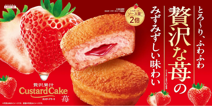 ロッテは、2月17日に「カスタードケーキ<贅沢果汁苺>」を発売する。