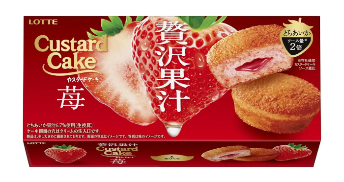 ロッテ、従来品の2倍のソースを閉じ込めたとちあいかの贅沢な味わいが楽しめる「カスタードケーキ<贅沢果汁苺>」を発売