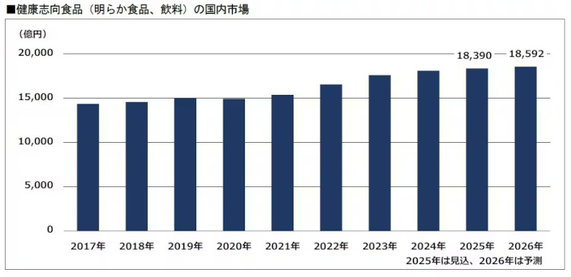 富士経済、健康志向食品(明らか食品・飲料)の国内市場の調査、2025年見込は2024年比1.4%増の1兆8390億円に