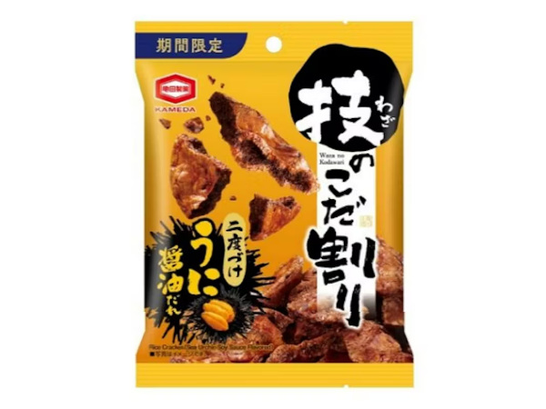 亀田製菓、あえて割った堅焼き煎餅に贅沢に二度づけした「30g 技のこだ割り うに醤油だれ」をコンビニで期間限定発売