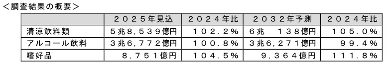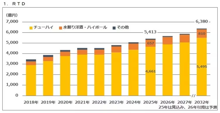 富士経済、RTD・ノンアルコール飲料・豆乳類・トマト飲料などの市場調査、RTDの2025年見込は2024年比6.7%増の5413億円に