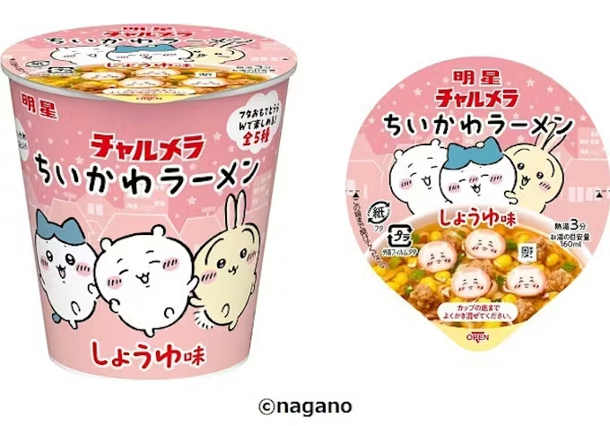 明星食品、「ちいかわ」デザインのミニカップめん「明星 チャルメラ ちいかわラーメン しょうゆ味」をリニューアル発売