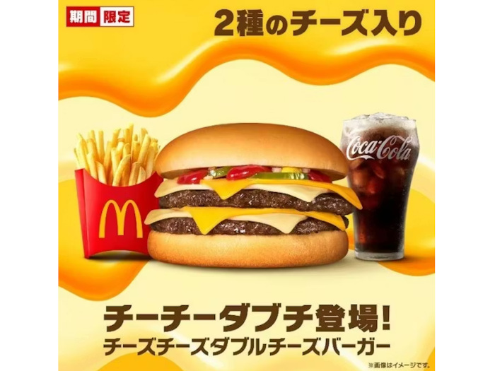 日本マクドナルド、ホワイトとチェダーの2種類のチーズを4枚重ねた「チーズチーズダブルチーズバーガー」を期間限定販売