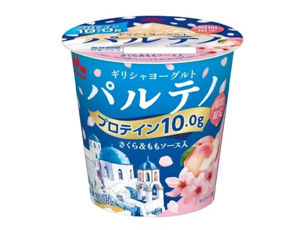 新商品の「ギリシャヨーグルト パルテノ さくら&ももソース入」は、「パルテノ」ならではの濃厚でクリーミーなヨーグルトの下に、華やかなさくらの香りをアクセントとした、甘い桃のソースを敷いている。桜のスイーツを想起するような春らしい味わいを楽しめる1品となっている。また、プロテイン量も10gと豊富に含まれているため、食事の1品としてもデザートがわりにも手軽においしくプロテインを摂取できる。