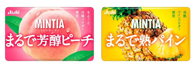 アサヒグループ食品は、「ミンティア」レギュラーシリーズから、「ミンティア まるで芳醇ピーチ」「ミンティア まるで熟パイン」を3月2日から発売する。