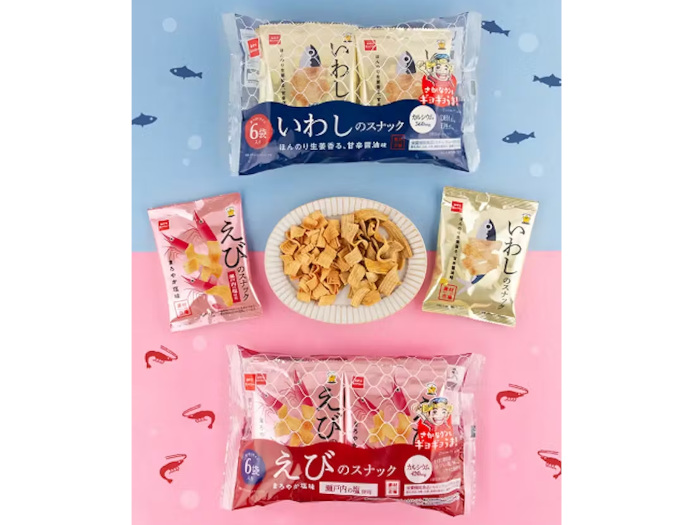 誰もが毎日の健康を意識するようになった今、“間食における健康志向”も高まっている。そんな健康志向ニーズに応えるため、間食らしいエンターテイメント性を残しながらもヘルシーさを両立した魚介のスナック菓子「素材市場」を開発。青魚をたっぷり生地に練り込んだ「素材市場いわしのスナック」「素材市場さばのスナック」、えび粉を生地に練り込み、アマニ油を使用した「素材市場えびのスナック」の3フレーバーを展開している。そんな「素材市場えびのスナック」から、食べきりサイズが6袋入ったマルチパックタイプが期間限定で登場する。