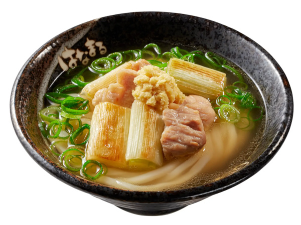 味の決め手となるのは、厳選した「いりこ」と昆布をベースに、各素材の持ち味を最大限に抽出した風味の強い「一番だし」に数種類の特選醤油や塩などをブレンドした「かえし」をあわせたはなまるオリジナルの「かけだし」に鶏油(チーユ)を加えた特製だし。鶏のコクと魚介の旨味がぎゅっと詰まっており、生姜が「ふわっ」と香り立つ。トッピングには、鶏油で香ばしく炒めた「焼ねぎ」と「鶏肉」をたっぷりと使用した。焼ねぎの甘味がだしに溶け出し、一口ごとに深まる旨味を楽しめる。表面はソフトで中心部は弾力が強い、コシがあり、もっちりふわっとした讃岐うどんとの相性も抜群となっている。